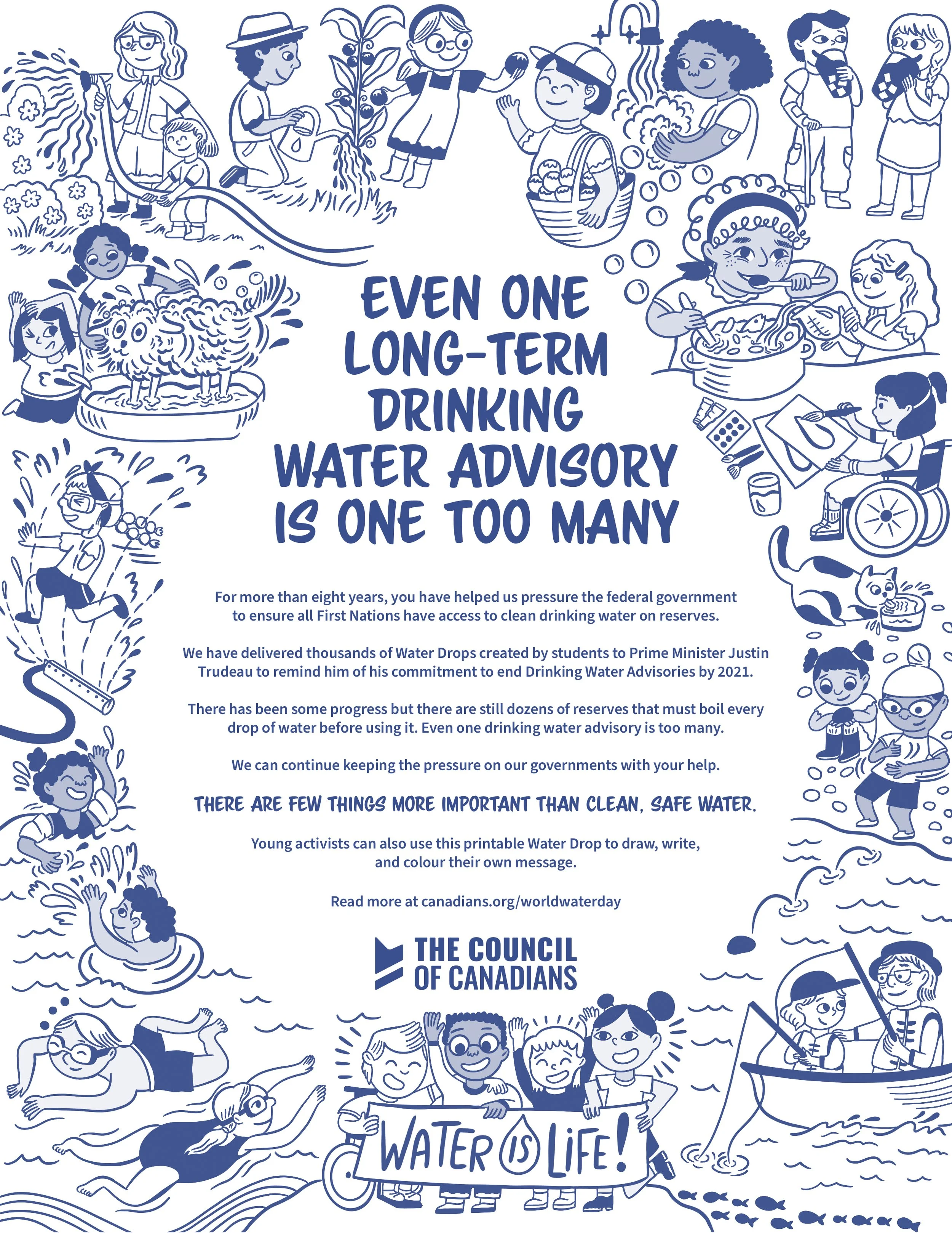 The theme for World Water Day 2023 focused on water activism and conservation for young audiences. My role involved creating visuals for a printable student activity sheet and an online teacher kit that were distributed to schools across Canada. The visuals needed to be engaging, educational, and versatile for print and digital use — and I especially enjoyed incorporating hand lettering to encourage kids to write their own letters to the Prime Minister.